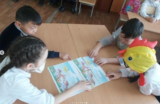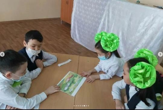 3 сыныптар арасында өткен "Ертегілер әлемінде" атты қойылым. Өткізгендер: Алмаганбетова Гульмира Токпиязовна Момбаева Жанат Сметкановна Адильбекова Асия Дакеновна