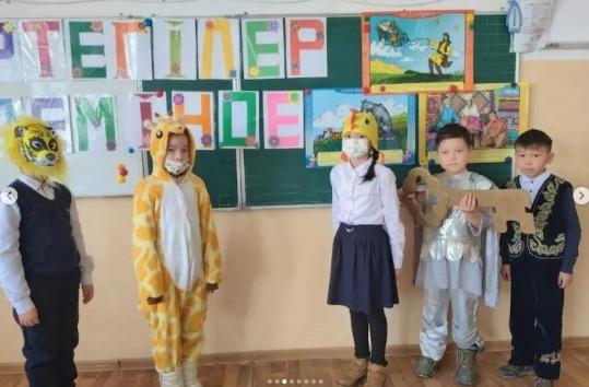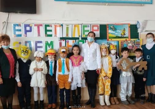 3 сыныптар арасында өткен "Ертегілер әлемінде" атты қойылым.