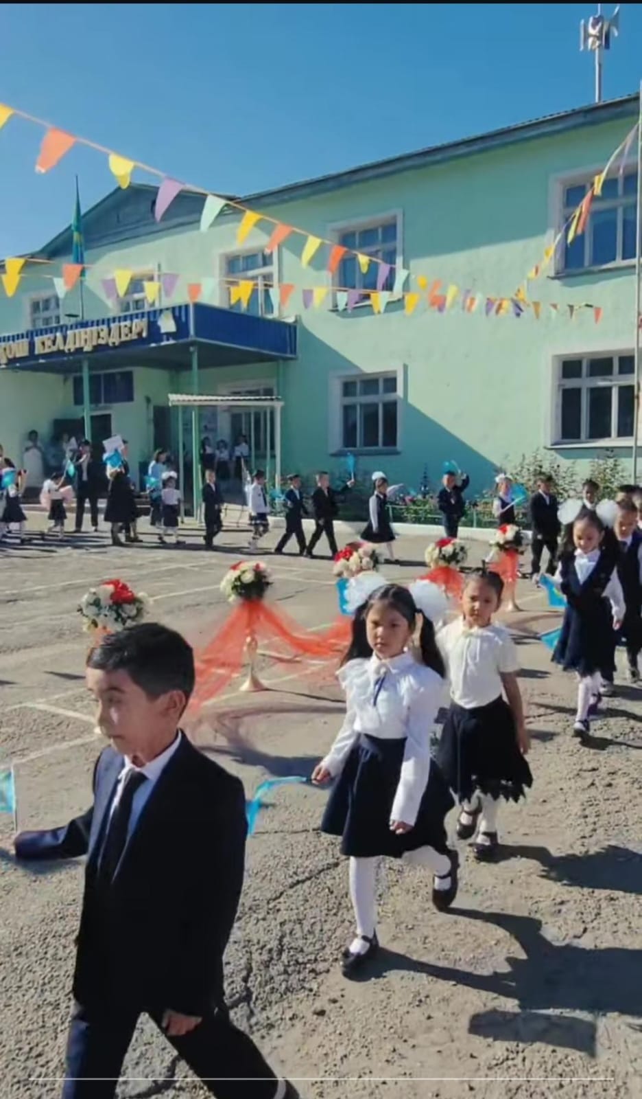 Іс-шара барысында оқушылар мен ұстаздар жаңа оқу жылын қуанышпен қарсы алып, мектеп ауласында көтеріңкі көңіл күй орнады.
