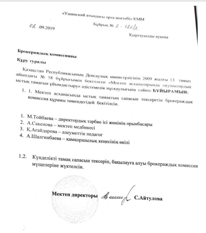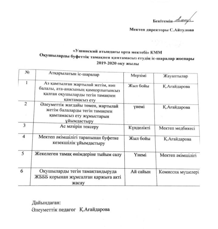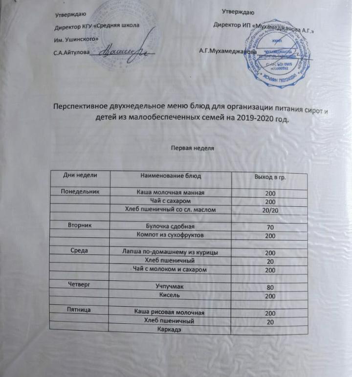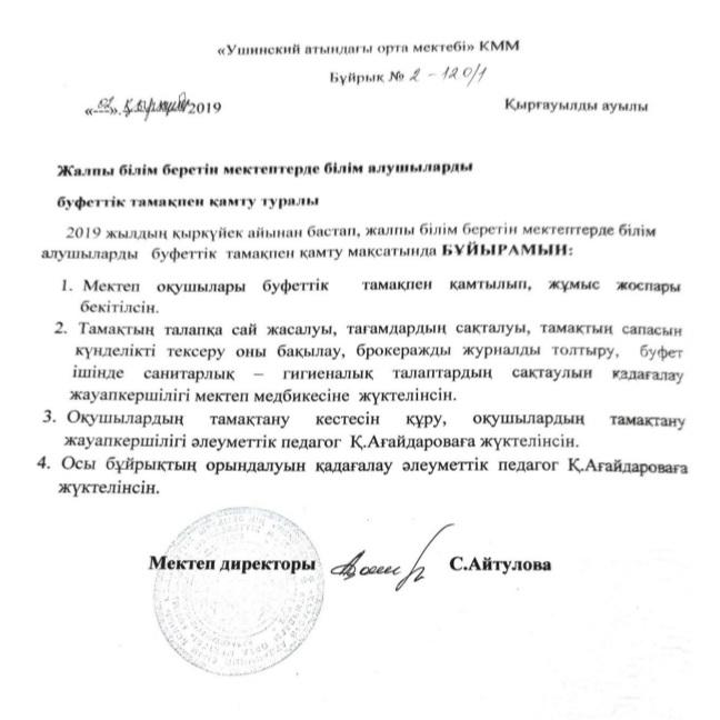 Тамақтану » "Алматинская область білім басқармасының Қарасай ауданы бойынша білім бөлімі" мемлекеттік мекемесінің "Средняя школа имени Ушинскиого" отдела образования Карасайского района